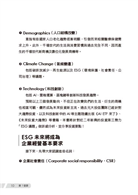 1. Demographics(人口結構改變):意指有些國家人口老化趨勢逐漸明顯,引發而來相關醫療保健需求上升。此外,千禧世代的生活與消費習慣與過去完全不同,因而產生的千禧世代新商機及數位化發展商機等。