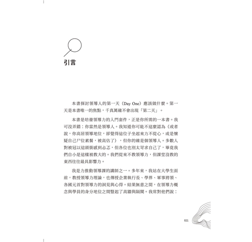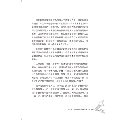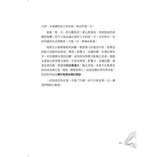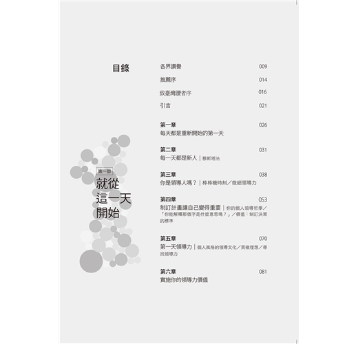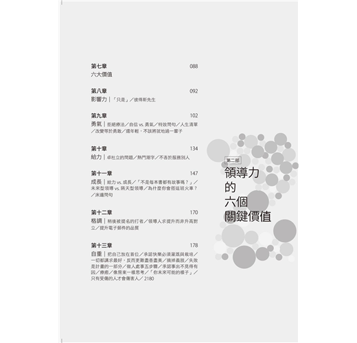 2.不侷限在職場上,將領導力擴展到生活之中,人生各階段或遇到的各種挑戰皆能適用。