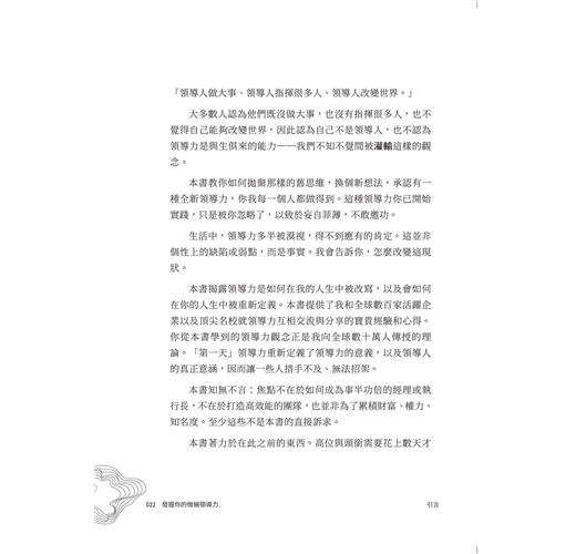 「你過去認知中關於領導力的一切都可能是錯誤的⋯⋯這本書證明了我們所有人都能找到自己的領導力。」