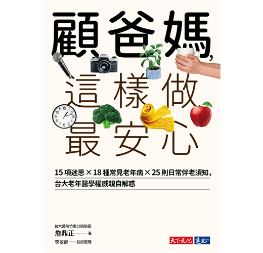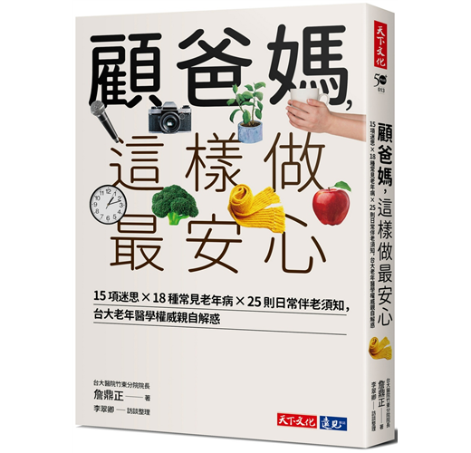 ▍台大老年醫學權威詹鼎正醫師擁有美國老人學與長期照護博士學位,受過完整正規老年照顧訓練,以其專業解答常見病患疑問及照護困境,更給予食、衣、住、行、育、樂等日常生活保健指南,幫助你替爸媽顧健康、顧快樂。