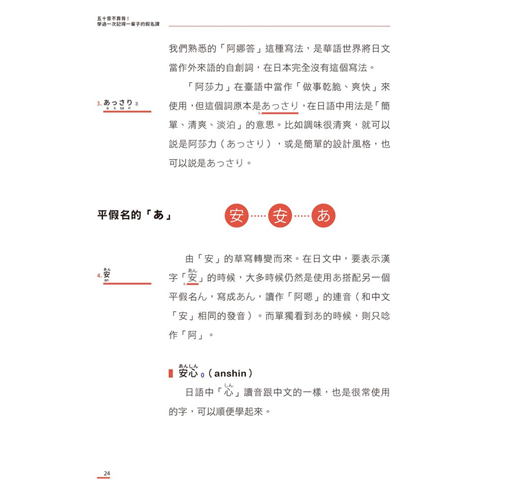 五十音是學習日文必得跨越的山海關,但它根源於漢字,因此對我們而言,要記住並不困難。掌握中文優勢,精選日常詞彙,讓中文成為你學習日文的墊腳石而不是絆腳石。