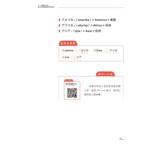 3.每個五十音分為平、片假名兩部分,單一個讀音的不同字型放在一起學習,記憶效果更好。