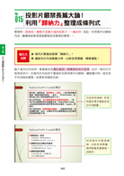 PowerPoint是一套非常容易上手的軟體。不過,是否了解箇中竅門,對於製作出來的成果,會有非常大的差異。本書沒有廢話,以簡單易懂的解說,明快地告訴您如何規劃投影片的製作、配色的基本技巧、表格與圖形的視覺化,幫助您製作出具有魅力的專業投影片。