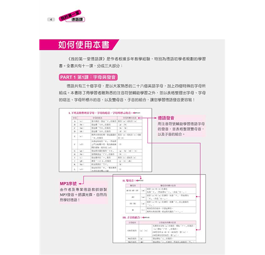 作者親錄MP3發音+朗讀光碟,德語發音最清晰標準,配合課文、重點單字朗讀,反覆聽、說練習,讓您說出一口流利的德語。
