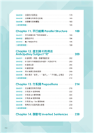 閱讀攻略按照文法重點,共劃分12個大章節,各章節下細分該主題的各個解題要點,讀者可針對自己較不擅長的部分熟讀、演練。作者濃縮自己多年來的教學及考試經驗,統整考試最常考、考生最易混淆部分,提供給讀者辨明考試重點。