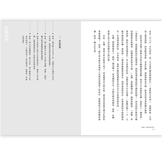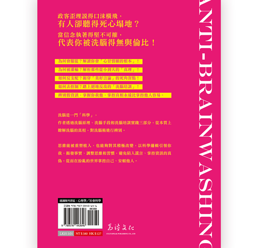 作者透過洗腦原理、洗腦手段和洗腦培訓實踐三部分,從本質上瞭解洗腦的真相,對洗腦術進行辨別。思維能被重塑植入,也能夠對其積極改變,以科學邏輯引領你我,揭發事實、調整思維和習慣,避免陷入謊言、掌控資訊的真偽,從而在紛亂的世界掌控自己、安頓他人。