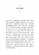 這三座美術館也都致力於重新思考「當代性」4的範疇,這並非巧合。我在本書中將比較兩種當代性模式。第一種是現世主義(presentism)模式,把「當前」視為我們思維的視域與標的。這也是「當代」一詞在今日藝術界的主流慣用意涵。有兩項因素支撐著此模式:一是我們無法從全球整體性的層面理解當前,二是我們容許這種茫然不解的狀態,並且視其為當前歷史時代(the present historical era)的構成條件。我想藉由本書發展的是第二種模式,其靈感來自我對上述三座美術館實踐的觀察。這種模式把當代性理解為一種辯證方法和帶有政治色彩的計畫,一種對時間性(temporality)更為激進的理解。因此,時間與價值便構成我所謂「辯證式當代性」(dialectical contemporaneity)這項概念至關重要的判定標準。這項概念並非指稱藝術作品本身的風格或時期,而是處理藝術作品的一種途徑(approach)。依此途徑處理藝術機構的結果之一,就是促使我們重新思考美術館的功能、美術館所珍藏的藝術範疇,以及美術館所形塑的諸種觀賞樣態。