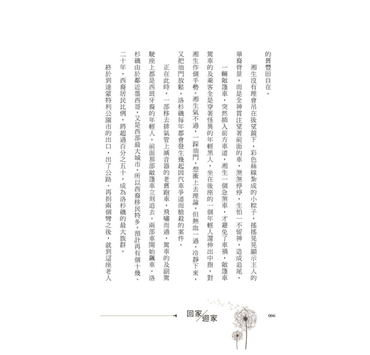 一辆敞篷車,突然插入前方車道,湘生一個急煞車,才避免了車禍,敞篷車駕車的及乘客全是穿着怪異的年輕黑人,坐在後座的一個年輕人還伸出中指,對湘生作個手勢。湘生氣不過,一踩油門,想衝上去理論,但熱血一過,冷靜下來,又把油門放鬆,洛杉磯每年都會發生幾起因汽車爭道而槍殺的案件。
