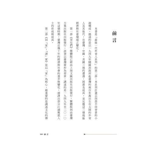 本書是「最後一代外省人系列」的第二部,本系列計畫以四部不同背景的小說構成。描述的是以1949年隨國民政府赴臺灣的兩百多萬出生在大陸的外省人及其後代,在臺灣、中國、美國三地的遭遇,困惑及成長,並反應這三個地區經濟與社會環境之變化。