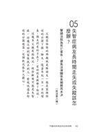另,作者們費心將平日執業所累積的寶貴經驗,用平易近人的語言,分享給失智症病友與家屬,筆者亦深感敬佩。本書確實是一部值得閱讀、學習的攻略。