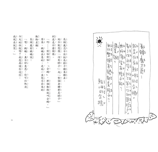 長頸鹿在第一封信上提到:「我的脖子很長。」