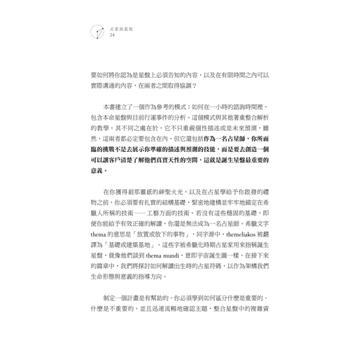 本書從基礎出發,指出一條未來世代占星家應兼備理性與感性的實踐之路。