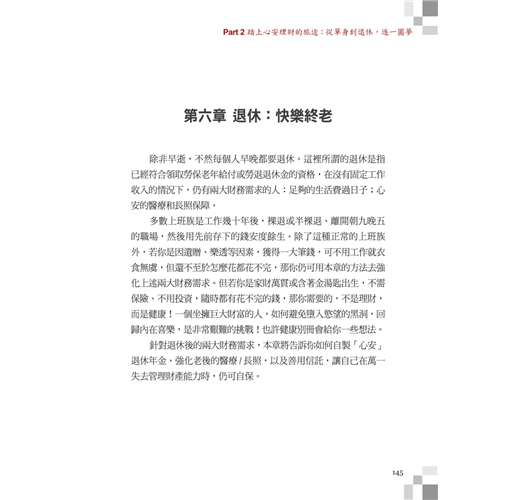 退休族更應好好讀這本書。退休前,怎麼準備一大筆退休金?更精彩的是,退休後,又如何自製每個月至少領3~6萬的退休年金?