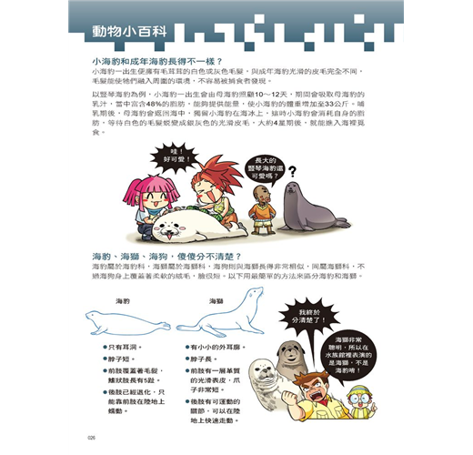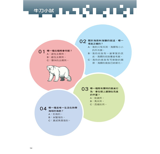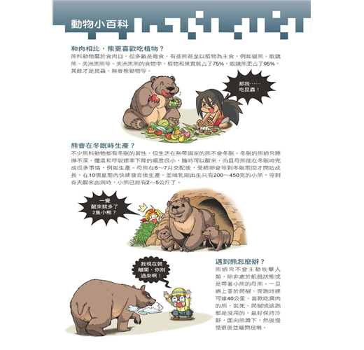 STEP 2知識專區∣科學性★★★★★設有「動物小百科」單元,特別介紹熊科動物與鰭足類動物的構造與小常識,以及臺灣黑熊、喜瑪拉雅棕熊、貓熊、海象、北海狗、加州海獅等動物的超炫常識,讓小朋友有系統的學習。