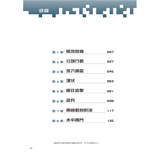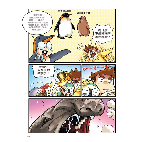 只要學習3步驟,趣味漫畫+驚險故事=開啟知識之門,培養小小生物學家!STEP 1情境學習∣教育性★★★★★圖像式漫畫結合生動可愛的人物和驚險刺激的故事編排,讓你彷彿置身各種動物的棲息地,加深小朋友的印象。並且藉由團隊合作的故事,建立勇於挑戰與冒險的精神,並藉此培養關懷自然與生命的胸襟和體貼他人的個性。