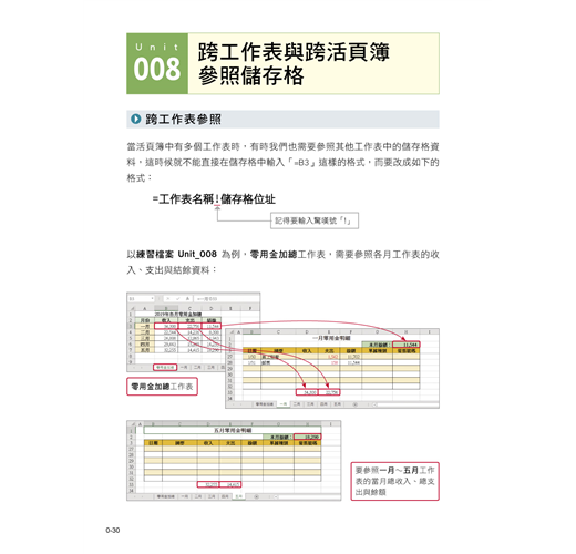 .【函數語法說明】:摘錄各單元的函數語法並加上參照頁碼,方便讀者隨時查閱函數語法。