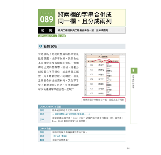 .將員工編號與員工姓名合併在一起,並分成兩列。