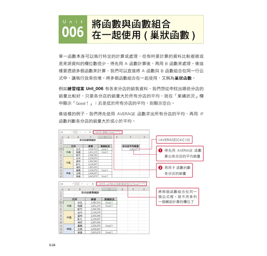 ●以「多個函數組合應用」為主軸,有別於市面上僅介紹單一函數的書。