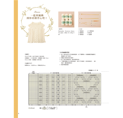 每款作品都有詳細的織圖與作法說明,「基礎編織筆記」更貼心的以照片分解編織步驟,即使是新手也可以安心照書編織看看喔!