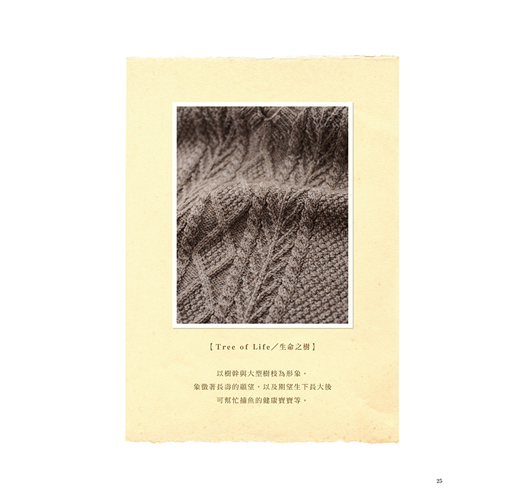 本書收錄了由13位日本知名編織作家創作,共35款以艾倫花樣為主的斗篷、帽子、圍巾、披肩、背心、開襟外套等。除了精選作品的織法,對於運用於手織服上的麻花、蜂巢、生命之樹等花樣,也一併介紹了其由來與意義。
