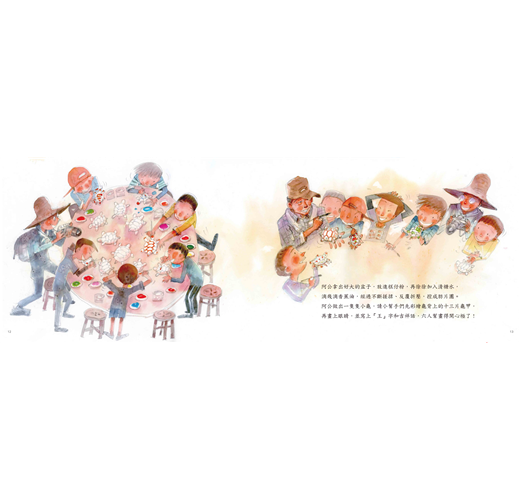 阿公做出一隻隻小龜,請小幫手們先彩繪龜背上的十三片龜甲,