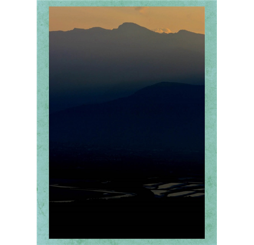阿里山與拉拉山的幾株巨木旁,晨霧與山嵐之間,祂靜靜等候。溪澗、瀑布與常被忽視卻有著動人的萬年風霜之美的多處岩壁旁,我曾經開懷閱讀著歲月的刻痕,也有不少次流著淚禱告……。整體成林,獨自也可細細地鑑賞良久的樹木,那些美得無以復加的台灣紅檜、扁柏與黑松,好幾次我知道若輕撫得再久一點點,就將會錯過日頭的恩賜而進入林中暗夜的危險了!難以計數的兀自飄逸美麗著的奇花、勁草,欣賞之餘總在山間還有餘光時,不忘以我仍悸動或已經舒緩的心,以及數位化的CMOS或CCD菲林(底片),搶著記錄了一些些。山林之間將近日暮的群山翦影與光影變幻最是憾人,每每按下快門線進行數秒鐘的曝光,知道這可能是一幀傑作時,肉眼看著眼前這麼雄渾又純粹的山的側影,漸層地墨化至完全消失於虹膜,我總覺得自己是當天台灣山林間最幸運最蒙福的人!而此刻默然愛著世人的造物主,看著這麼執著抑或其實是愚蠢的業餘攝影者與山林探索者的我,也靜靜地在一聲並不打擾的銹胸藍姬鶲的啼叫中,愛著我與我的認真吧!
