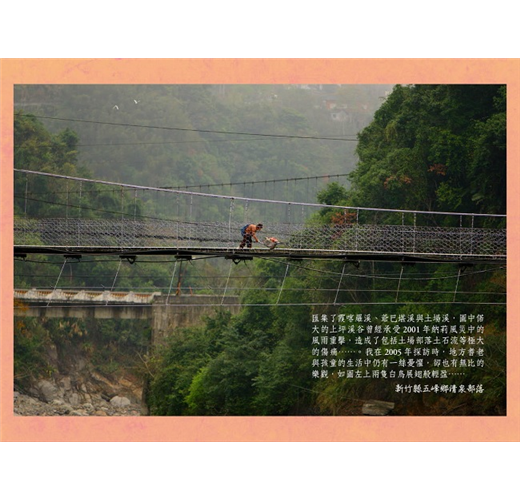 山林之間還有許許多多可愛的人們,可以隨處暢意極其悠揚高歌著的,且耕作、採獵、健走、成長於山林之間的原住民朋友們,多年來我有幸認識了一些,有著一些真摯的互動與美好的回憶,偶會想起:我的鏡頭與我的心探索著的,這本書中呈現給讀者的一頁頁的景致,這些長年與大自然親近的山間人們,生來都是最佳的探索者,應該也都曾經深深探索過……