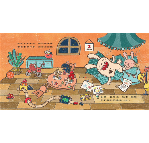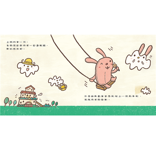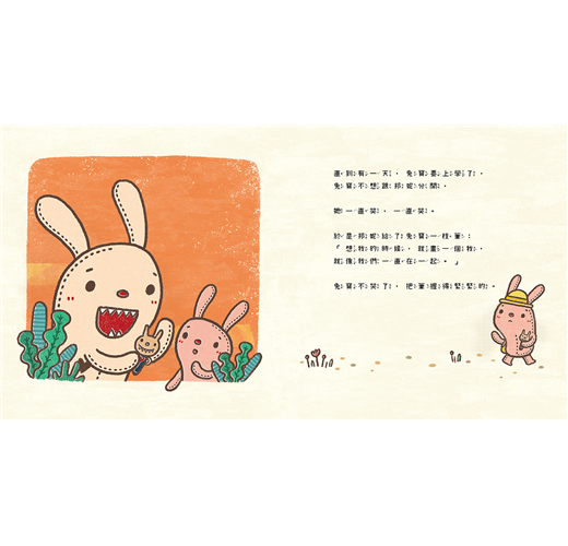 ▲「邦妮給兔寶一枝筆,說:『想我的時候,就畫一個我,就像我們一直在一起。』這句話傳達本書最重要的概念:『舒緩孩子的分離焦慮,就是給孩子一個他可以做得到的方法。』他就能慢慢接受新環境、新朋友,勇敢往外探險了!」──嚴淑女(童書作家與插畫家協會台灣分會會長)