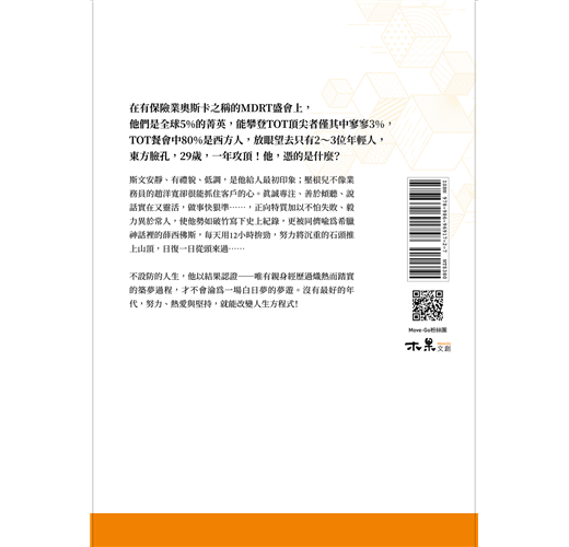 1. 作者不僅可作為保險從業人員借鏡學習的楷模,其累積的豐富心法和方法,更是渴望進入成功賽道的業務新人,值得捧讀的實用法則。