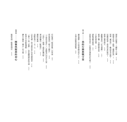 這可以說是一本業務工作人員必備的工具書,從如何規劃生涯,往自己目標去邁進,到如何面對挫折,如何加強自信心,如何準備工作,態度、心思,都有完整的說明,並提出解決方法。