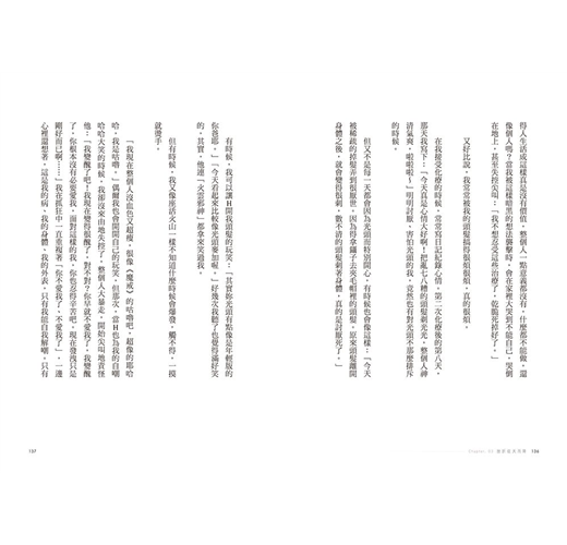 要懂得放自己一馬,試著學會,就算沒有過上一個火力全開的人生也沒有關係。並沒有人要求你這樣過日子。會有這種感受,多數都是自己給自己套上的枷鎖,讓自己承受那樣巨大的壓力;人的身心狀況很多時候就是這樣反撲的,這一點我的感受特別深刻。在我生病前,一直把全部時間都貢獻給工作,像用遙控器操控我的人生,只要按下某個鍵,所有事情就會依照心中的設定發生。