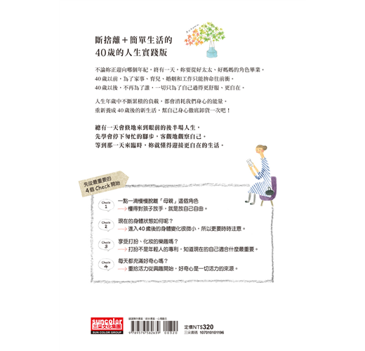 以後就把這樣的從容用在自己身上吧!為了緩慢悠閒地走向只屬於自己的50歲、60歲,現在就要找出自己能做的事。我把那些能替換的、不想再做的、新起步的事情全部列出來,整理成這本書。內容包括「要是能早點開始就好了」的懶人生活術、想要培養的新習慣、一直想做而且終於做到的事,或是做了真好的新人生體驗等等,內容非常廣泛。