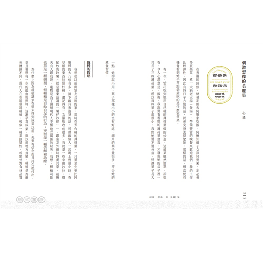 ● 從食物和日常用品為起點,有親近感,給讀者心理上的閱讀門檻也較低,但延伸出去探討的議題包括都市內的人際關係、土地運用,或是身分認同等較深度的文化面。