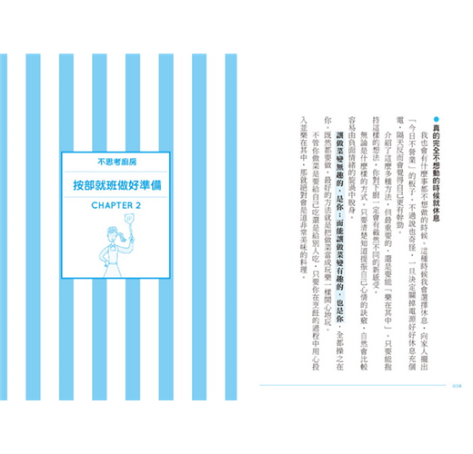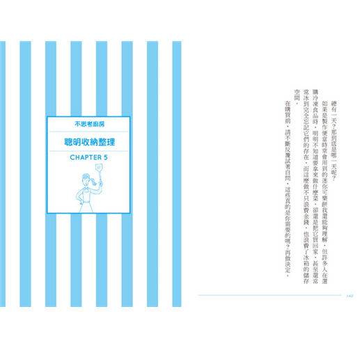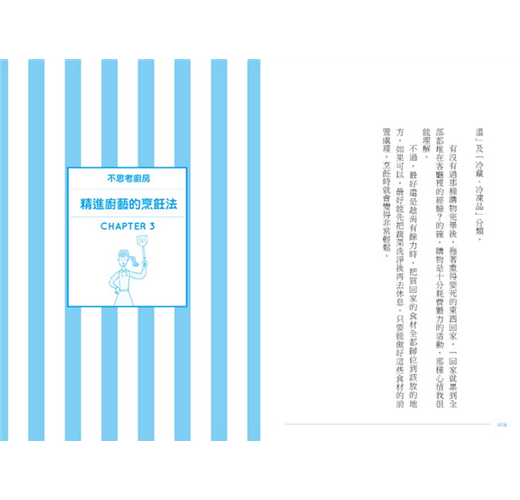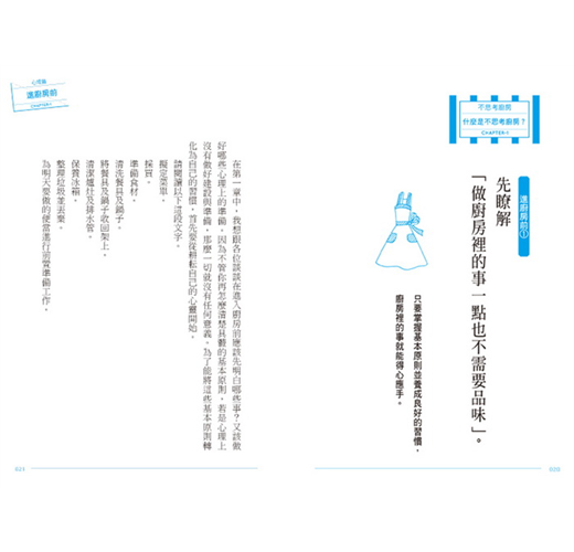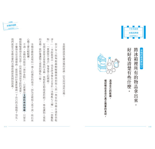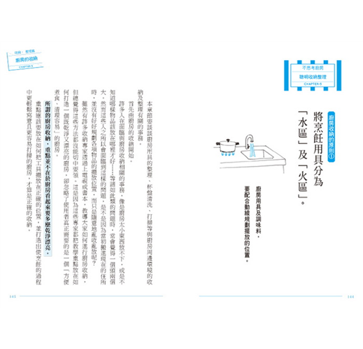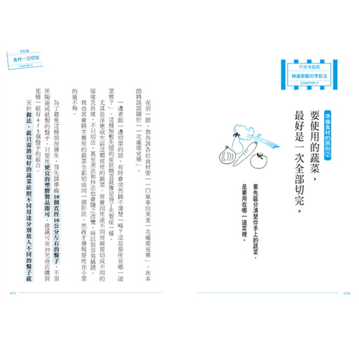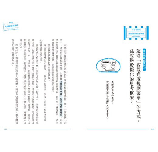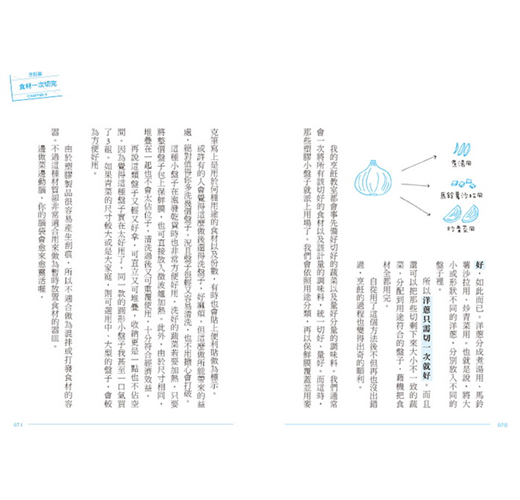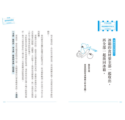 ◎當了超過13年的家庭主婦,終於發現自己以前浪費了很多時間。這本書改變了我的想法,現在採買時不會再隨興買些有的沒的,也能更有效利用時間,甚至連洗碗盤的順序、整理收納的步驟都重新學到好用的訣竅,真可說是我廚房裡的聖經!(39歲‧家庭主婦)