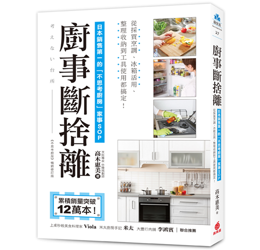台灣人說:「開門七件事,柴米油鹽醬醋茶。」高木惠美老師則說:「廚房三件事,食材、廚具和餐具!」只要能夠掌握「少就是多」的觀念,充分把「斷捨離」的原則運用在食材、廚具、餐具的保存取捨與清潔整理,從此以後,根本「不需要思考」就能「時時出好菜」,還能擁有潔淨清爽的廚房!