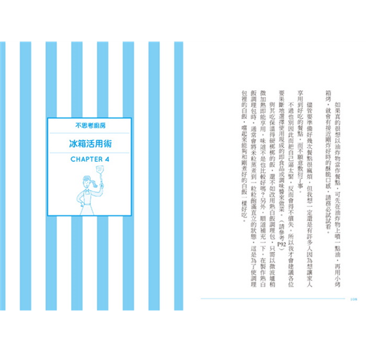 ◎去年底結婚之後,我在今年搬離娘家,而這也是我人生中第一次離家。在此之前,我完全沒有做菜經驗,也因此對新婚生活充滿不安。老實說,每天一早起床就在想「要做什麼菜」;而進了廚房更是手忙腳亂,毫無章法可言。對我來說,做菜就好像下地獄,加上白天還要上班,真的好希望有人教我怎麼改善。就在這時,我看到了這本書,並在跟著做之後,發現自己不再慌亂,不但做菜時愈來愈開心,甚至面對廚房裡的所有大小事也愈來愈得心應手——真心感謝!(32歲‧職業婦女)