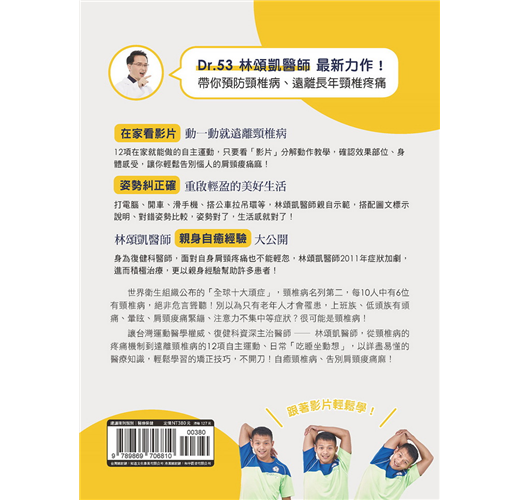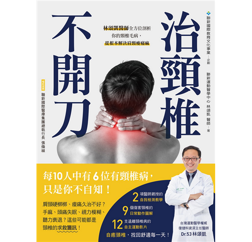 台灣運動醫學權威、復健科資深主任醫師──林頌凱醫師,他從頸椎病的疼痛機制、頸椎問題從哪裡來,到遠離頸椎病的12項自主運動、日常「吃睡坐動想」,清楚易懂的正確知識,輕鬆學習的矯正技巧,幫助你有效舒緩疼痛、不適,不開刀!自癒頸椎病、告別肩頸痠痛麻!