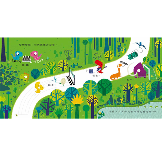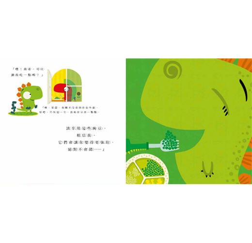 在小小恐龍的世界裡,充滿明亮且多彩的插畫,簡單俐落的版面設計,將帶領你和孩子一起進入小小恐龍們的世界裡同樂。