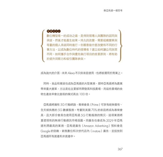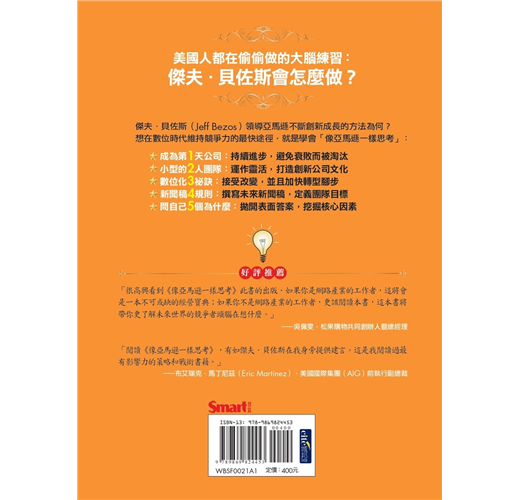 「閱讀《像亞馬遜一樣思考》,就有如傑夫.貝佐斯在我身旁提供建言。這是我閱讀過最有影響力的策略和戰術書籍。」