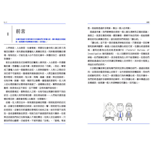 大多數的警政單位都有專門研究犯罪心理學的部門,透過各個面向:從頭部的髮型到腳上的鞋子、從外表服裝到肢體語言,他們累積的經驗和科學研究,即形成了一套完整的行為科學讀心術。而在本書中,我們即將透過許多辦案事例的解析來分享讀心術。書中傳遞出的各種資訊,能夠讓一個人快速的學會如何了解對方的真實想法。