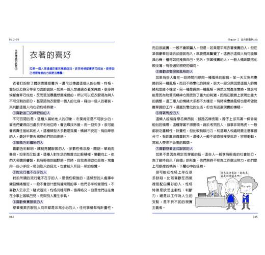 人際交往、商業交涉時,外型、穿著打扮是影響旁人對你的觀感好壞的關鍵之一,本書整理分類了外型、興趣、打扮背後的潛藏性格,除了讓讀者學習判斷一個人外,也是讓讀者瞭解任何場合都有其適當的穿著打扮,不然會讓人產生不好的印象。另外,TED Talk的「態度決定你是誰」這篇演講中,哈佛心理學家Amy Cuddy指出,人的非語言動作,不只會影響他人,對自己的態度和心理有強大的影響。我們可以透過一些姿勢來增加自信和氣勢,幫助我們在面試、報告、商業談判時能獲得成功,以及贏得他人的信任等。