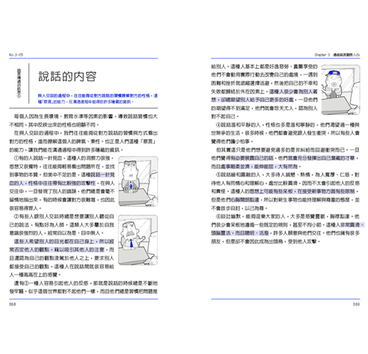 另外,我們都知道第一印象很重要,若說第一印象最為關鍵的場合,即是面試的時候。人力資源部門就常要透過第一印象來決定面試者是否適合該職務,是否是公司需要的人才,那麼判斷力就是一個很重要的技能。本書教你從外型、興趣、穿著打扮開始去瞭解、分析對象物的性格,然後行為心理學推測對象物行為背後的動機與暗藏的訊息,綜合對象物的性格和行為心理學的理論幫助我們在人際關係中更能遠離小人,獲得好人緣。除此之外,本書還教你如何善用心理學獲得人際社交和商業往來的優勢,贏得信任感和話語權。