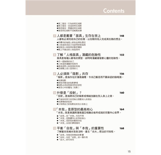 每個人最感興趣的人莫過於自己,最想要了解的人也是自己。榮格心理學的發展其實就是榮格探索自己、以及了解人類心理的結果。榮格可以說是一位勇於探索內心世界的心理學家,閱讀本書猶如在一位傑出的心靈導遊的陪伴之下,進行一場深度的人類內心世界之旅。我自己因為從事心理諮商的臨床與教學工作,對於人類心理的複雜性有著第一手的接觸和體會,讀者如果想要增進對於自己與他人內心世界的深度了解,學習榮格的深度心理學是一門不可或缺的學科。在心理學的領域裡,最著名的深度心理學除了佛洛伊德的心理分析,就是榮格的分析心理學。俗話說人心難測,一般人也常常感慨地說:人心真的很難懂。根據榮格的看法,人心之所以複雜難測,就是因為人同時存在許多對比的性格,互為對比,互為補充,也同時互相衝突。例如,外向的人,他的內心世界裡同時存在著內向的特質;內向的人,他的內心世界裡同時存在著外向的特質。又例如,男性的內心世界裡存在著女性的特質,女性的內心世界裡卻存在著男性的特質。每個人在生活中總會帶著一些面具,可是在這些面具的背後卻又存在著真實的自我,比方說品德良好的人,卻同時在內心世界裡存在著陰影。人心的複雜由此可見一斑。學習覺察每個人自己內心世界裡的對比性格,並且保持它們的平衡,便是每個人的功課,也是促進自我了解與心理健康的有效方法。