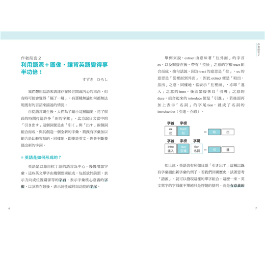 每則字首、字根、單字皆有附語源涵義,由淺入深,鍛造讀者實力。