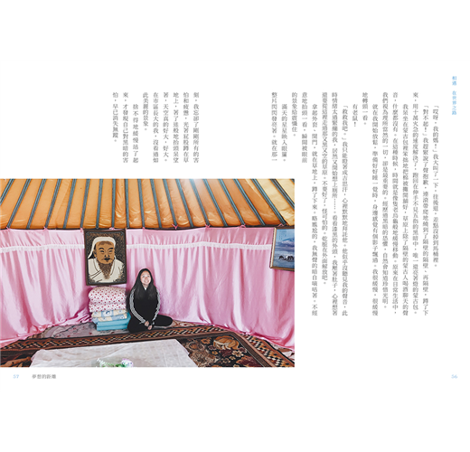 「救救我吧。」我只能看著成吉思汗的畫像,默默的跟他說。他似乎還沒聽見我的聲音,而太過緊張的我,又開始想上廁所了。好想哭啊,看看漆黑的帳外,我壓著肚子。還要從這裡走過那又黑又冷的草原,不要好了,怪可怕的。在地在外面解放吧。