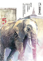 光民:就挑簡單的畫啊(笑)。我第一次跟明益見面是二〇一五年譯動國界論壇前,當時本來想畫〈一頭大象在日光朦朧的街道〉,因為我穿過大象布偶裝打工,對那篇很有共鳴。但那個時候明益說:「其實那個石獅子喔……」就有點暗示我的味道,我於是趕快回答:「好啊好啊,可以啊。」那是第一次見面,大家一起吃飯,他坐在我旁邊,我們都坐得很端正(笑)。