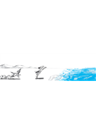 一個陽光明媚的日子,一位充滿好奇心的小女孩在海邊跟海浪嬉戲玩耍,本書講述了小女孩在沙灘上度過一天的可愛故事。這是一本化繁為簡、甜美,令人振奮的圖畫書,圖像語言充滿童趣,全書洋溢著歡樂的氣氛。書籍藝術家Suzy Lee巧妙地運用了圖畫書的中線和邊界等書籍本身既有的元素,創造出精彩的視覺遊戲,勾起你我共同的海邊經驗。本書雖為無字圖畫書,但小女孩與海浪的互動過程輕鬆、幽默、易懂,作者熟練地使用活潑生動、簡潔有力的黑色線條,以及明亮、清新的藍色色塊,隨即表現出大自然豐沛的能量,人類與自然相存相依的情感張力。