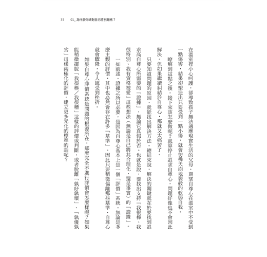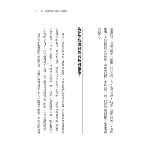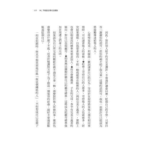 取而代之的,應該是「彈性思考」。也就是,明白自己有不足之處,同時,也看見自己有良善的可能性,這才是更合理的自我對話方式。