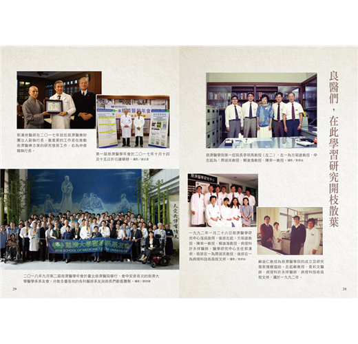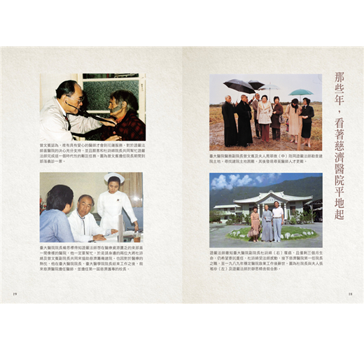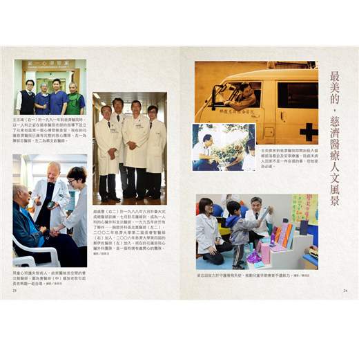 在這本書裡,我們由慈濟建院前的艱辛歷史,講述到建院的三大功臣:杜詩綿院長、曾文賓院長、以及楊思標校長,還有最早來自於臺大醫院十幾位優秀的年輕醫師,經由他們共同的努力,創造了很多臺灣的奇蹟。