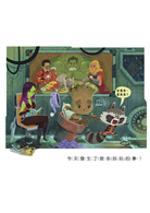 「呼~~」小樹人格魯特打了個呵欠,要準備睡覺了。不過,火箭浣熊阻止了他──不能睡,先一起想想今天都做了什麼吧!